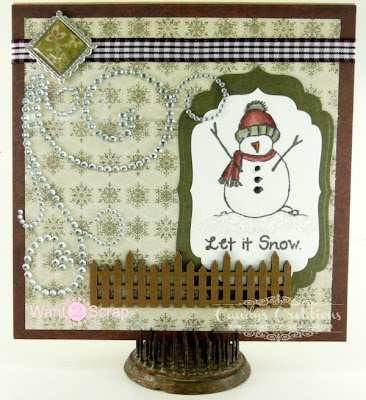 Next using yellow Bazzill cardstock I die cut the Top Swirl from Heartfelt Creations HCD 737 Ornate Gateway Die and placed it at the top of my picture, adhering it with Art Institute Dries Clear Adhesive. I then added three large pearls from Want2Scrap® LeCreme Pearls - 72 Count, and some Craftwork Cards Candi in Choc-a-Moca to the page.