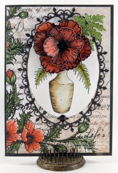 Today I am sharing with you my Sparkling Poinsettia Decorated Lamp Post that I created using a lamp post I found at a thrift store. I painted it with DecoArt Metallic Glaze before decorating it with design paper, stamps and dies from the beautiful Heartfelt Creations Sparkling Poinsettia Collection.